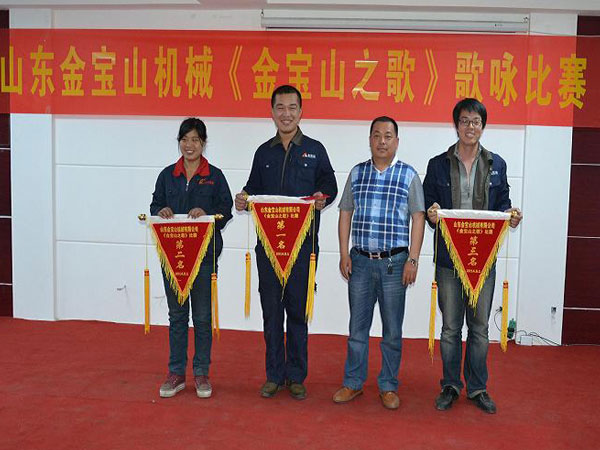 經(jīng)過激烈的角逐,評(píng)委組從歌曲內(nèi)容、隊(duì)員精神狀態(tài)、演唱技巧、著裝整齊度等方面進(jìn)行現(xiàn)場(chǎng)打分,分別評(píng)出了一、二、三等獎(jiǎng)。銷售管理部力壓群芳,獲得了本次比賽的第一名,生產(chǎn)服務(wù)科屈居第二,人力資源部獲得第三名?! ?BR style="FONT-FAMILY: "> 房士奎總經(jīng)理對(duì)獲獎(jiǎng)隊(duì)伍進(jìn)行頒獎(jiǎng)并發(fā)表了講話,房總說,在當(dāng)前生產(chǎn)任務(wù)比較繁重的情況下開展歌詠比賽,一是緩解員工精神壓力,二是鼓舞斗志,凝聚人心,三是豐富職工文化生活,希望大家在生產(chǎn)中要像歌中唱的一樣,牢記“憨孝誠”的企業(yè)文化理念,打造精品闖世界,珍惜金寶山的品牌,為客戶提供最完美的破碎機(jī)?! ?BR style="FONT-FAMILY: "> 通過本次比賽,鼓舞了員工斗志,凝聚了團(tuán)隊(duì)力量,進(jìn)一步激發(fā)了廣大干部員工的工作熱情和干勁。