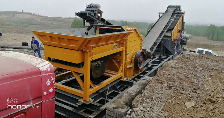 移動式破碎站主破碎設(shè)備為破碎機,物料經(jīng)給料機均勻輸送到破碎機內(nèi),被破碎機初步破碎以后由圓振動篩構(gòu)成閉路系統(tǒng),實現(xiàn)物料的循環(huán)破碎,符合粒度要求的物料由輸送機輸出,從而達到生產(chǎn)目的。移動式破碎站還可以根據(jù)實際生產(chǎn)需要去除圓振動篩,而直接對物料進行初步破碎,然后配合其他破碎設(shè)備進行具體的操作,方便、靈活。