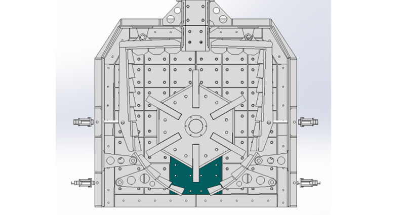 FSX系列制砂機是帶有板錘的轉子在電機的帶動下高速的做圓周運動,當物料進入破碎腔后,受到高速旋轉板錘的沖擊,物料高速射向反擊板的撞擊,以及高速物料之間撞擊,還有反擊板的摩擦剪切力才破碎完成,符合要求的料直接從下端排除,可以通過調節(jié)反擊板掛架與板錘之間的間隙來控制出料的粒度。