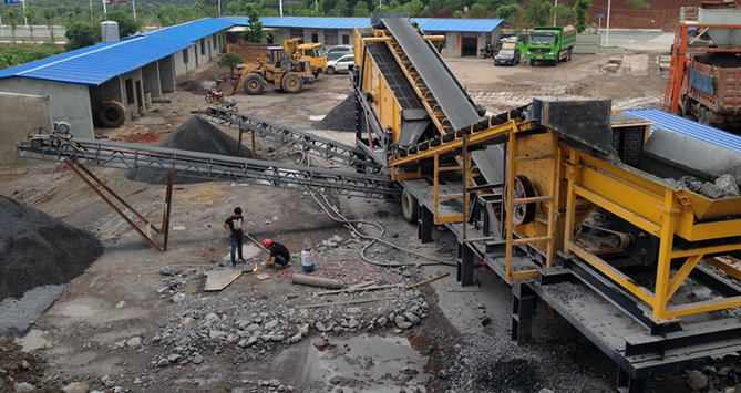 移動(dòng)式破碎站主破碎設(shè)備為破碎機(jī),物料經(jīng)給料機(jī)均勻輸送到破碎機(jī)內(nèi),被破碎機(jī)初步破碎以后由圓振動(dòng)篩構(gòu)成閉路系統(tǒng),實(shí)現(xiàn)物料的循環(huán)破碎,符合粒度要求的物料由輸送機(jī)輸出,從而達(dá)到生產(chǎn)目的。移動(dòng)式破碎站還可以根據(jù)實(shí)際生產(chǎn)需要去除圓振動(dòng)篩,而直接對(duì)物料進(jìn)行初步破碎,然后配合其他破碎設(shè)備進(jìn)行具體的操作,方便、靈活。
