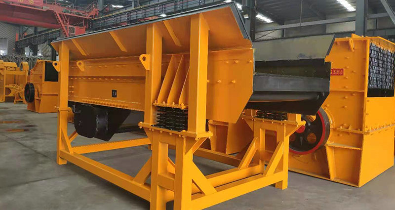 金寶山ZSW系列重型直線振動給料機專為破碎篩分中、粗破碎機前均勻輸送大塊物料設(shè)計。振動給料機采用雙偏心軸激振器的結(jié)構(gòu)特點,保證設(shè)備能承受大塊物料下落的沖擊,給料能力大。在生產(chǎn)流程中可以把塊狀、顆粒狀物料從貯料倉中均勻、定時、連續(xù)地給到受料裝置中去,從而防止受料裝置因進料不均而產(chǎn)生死機的現(xiàn)象,延長了設(shè)備使用壽命。給料機可分為鋼板結(jié)構(gòu)和篦條結(jié)構(gòu),鋼板結(jié)構(gòu)的給料機多用于砂石料生產(chǎn)線,將物料全部均勻地送入破碎設(shè)備;篦條結(jié)構(gòu)的給料機可對物料進行粗篩分,使系統(tǒng)在配制上更經(jīng)濟合理,在破碎篩分中已作為必不可少的設(shè)備。在金寶山機械有限公司客戶的石料生產(chǎn)線配置中常用于顎式破碎機的喂料。